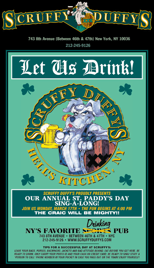 Whenever you are in NYC, why not have a few drinks at Scruffy Duffy's between 46th and 47th on 8th avenue. It is for sure a nice pub...don't forget to order some wings